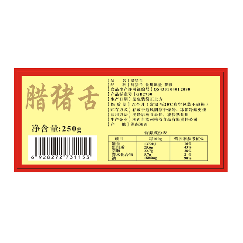 型号: 腊猪舌