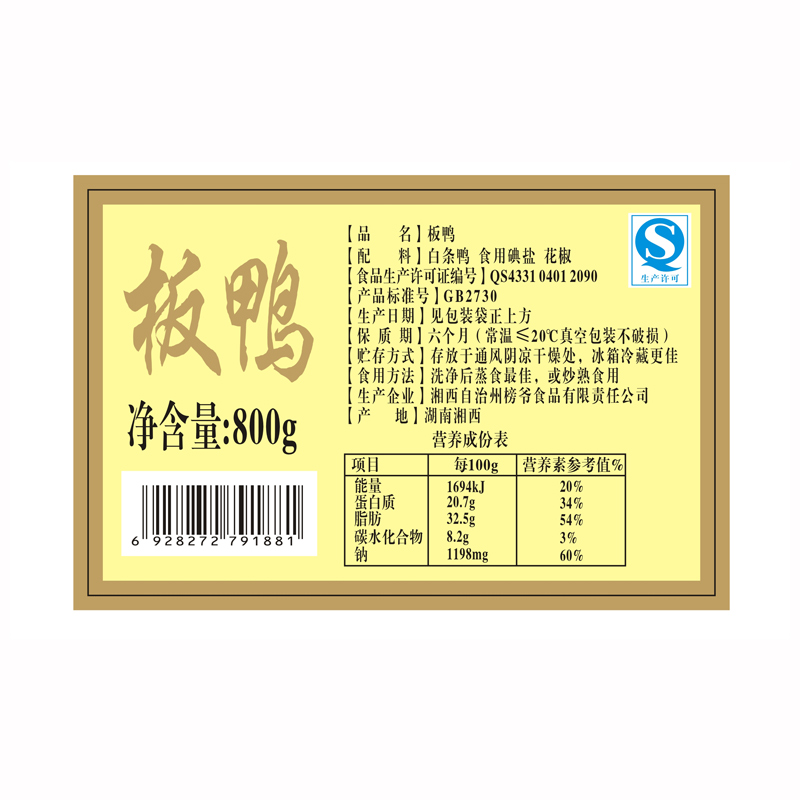 型号: 腊鸭礼盒800克